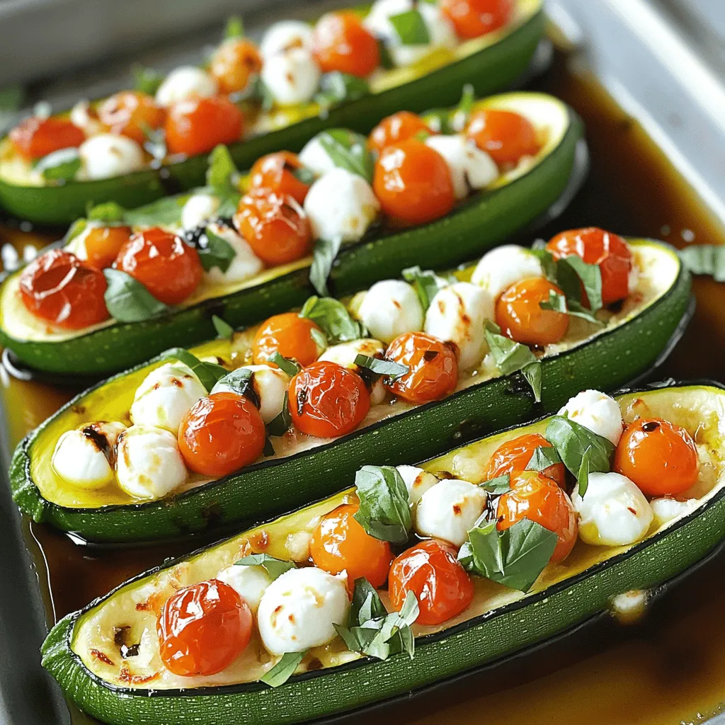 ![- 4 medium zucchinis - 2 cups cherry tomatoes, halved - 1 cup fresh mozzarella balls, halved - 1/4 cup fresh basil, chopped - 2 cloves garlic, minced - 1 tablespoon olive oil - Salt and pepper to taste - 1 teaspoon balsamic glaze (optional) When making Margherita zucchini boats, fresh ingredients shine. Zucchinis serve as the perfect base. They hold flavors well and have a nice texture. Cherry tomatoes add sweetness. They burst in your mouth with each bite. Fresh mozzarella brings creaminess and richness. Basil adds a fragrant herbal note. It ties all the flavors together. Garlic provides a sharp kick that enhances the dish. A drizzle of olive oil enriches the overall taste. Adding salt and pepper boosts all these flavors. You may choose to finish with balsamic glaze. It adds a tangy sweetness that balances the dish. The choice is yours, but I love the contrast it creates. - Baking dish - Mixing bowl - Spoon for scooping - Aluminum foil Having the right tools makes cooking easier. A baking dish is essential to hold your zucchini boats. A mixing bowl helps you combine the filling without mess. Use a spoon to scoop the zucchini centers. This creates space for the delicious filling. Finally, aluminum foil covers the dish while it bakes. This keeps moisture in and helps cook the zucchinis evenly. With these ingredients and tools ready, you're set to create this flavorful summer delight! For the full recipe, check back to see how to bring it all together. - Preheat the oven to 375°F (190°C). - Cut the zucchinis in half lengthwise. Scoop out the centers to form boats. Place them in a baking dish. - In a mixing bowl, combine the halved cherry tomatoes, mozzarella balls, minced garlic, and chopped basil. - Drizzle with olive oil. Season with salt and pepper. Toss this mixture well. - Fill each zucchini with the prepared mixture. Pack it tightly to fit. - Cover the baking dish with aluminum foil and bake for 20 minutes. - After 20 minutes, remove the foil. Bake for another 10-15 minutes until the zucchinis are tender and cheese is melted. - If desired, drizzle with balsamic glaze before serving. Garnish with more fresh basil for extra appeal. You can find the full recipe with all the details to create these tasty Margherita Zucchini Boats. To check if your zucchini is done, gently pierce it with a fork. If it slides in easily, it’s ready. If not, give it a few more minutes. Zucchini size matters too. Larger zucchinis need more time to cook. Adjust the baking time by adding 5-10 minutes on larger ones. This keeps them tender without getting mushy. Seasonings can make your Margherita zucchini boats shine. I love using fresh basil, oregano, and a pinch of red pepper flakes. They add depth and warmth. For oils, I recommend a good extra virgin olive oil. It brings out the flavors of the tomatoes and cheese. A drizzle of balsamic glaze adds a nice touch of sweetness, too. Pair these boats with a light salad or crusty bread. A fresh arugula salad with lemon vinaigrette complements the flavors well. For presentation, serve the boats on a colorful platter. Garnish with extra basil leaves. This makes the dish look fresh and inviting. For a bit of crunch, offer some toasted pine nuts on the side. For the full recipe, check out the [Full Recipe]. {{image_2}} You can change the cheese in your Margherita Zucchini Boats. For a twist, use feta or goat cheese. These cheeses add different flavors and textures, enhancing your dish. You can also go dairy-free with cashew cheese or nutritional yeast. If you want to try other vegetables, bell peppers or eggplant work great. They have a nice texture and soak up flavors well. You can even use mushrooms for a hearty filling. Just adjust the cooking time if needed. To make the recipe gluten-free, ensure your ingredients do not contain gluten. Most cheeses and vegetables are safe. Just check any pre-made items for hidden gluten. For vegan options, replace cheese with a vegan cheese alternative. You can also use mashed avocado for creaminess or add more veggies to the filling. This keeps it tasty and satisfying. Using seasonal ingredients makes your Margherita Zucchini Boats fresh and fun. In summer, add fresh corn or diced bell peppers. In fall, try adding roasted butternut squash for a sweet touch. Adjusting the recipe for holidays can also be fun. For a festive look, add cranberries or pine nuts for a pop of color and flavor. These little changes can make a big impact on your dish. For the full recipe, refer to the previous section. To keep your Margherita zucchini boats fresh, store them in an airtight container. This method helps keep moisture in and prevents them from drying out. You can refrigerate the leftovers for up to three days. After three days, the taste and texture may decline. If you want to save the zucchini boats for later, freezing is a great option. First, let the boats cool completely. Place them in a single layer on a baking sheet. Freeze them for a few hours until firm. After that, pack them in freezer bags. They can stay frozen for up to three months. To thaw, move them to the fridge overnight. Reheat in the oven at 350°F (175°C) until warm. To heat your zucchini boats without losing flavor, use the oven. Set it to 350°F (175°C). Place the boats on a baking sheet and cover with foil. This helps keep them moist during reheating. Bake for about 15-20 minutes. If you have leftover filling, use it in salads or as a topping for pasta. This way, you can enjoy the flavors in a new dish. Can I use larger zucchinis? Yes, you can use larger zucchinis. Just make sure they are firm and fresh. Larger zucchinis may need more cooking time. Check for tenderness with a fork. What can I substitute for mozzarella? You can use other cheeses like goat cheese or ricotta. Both offer great flavors. Vegan cheese also works if you want a dairy-free option. How do I know when the zucchinis are done cooking? The zucchinis are done when they are tender and the cheese i