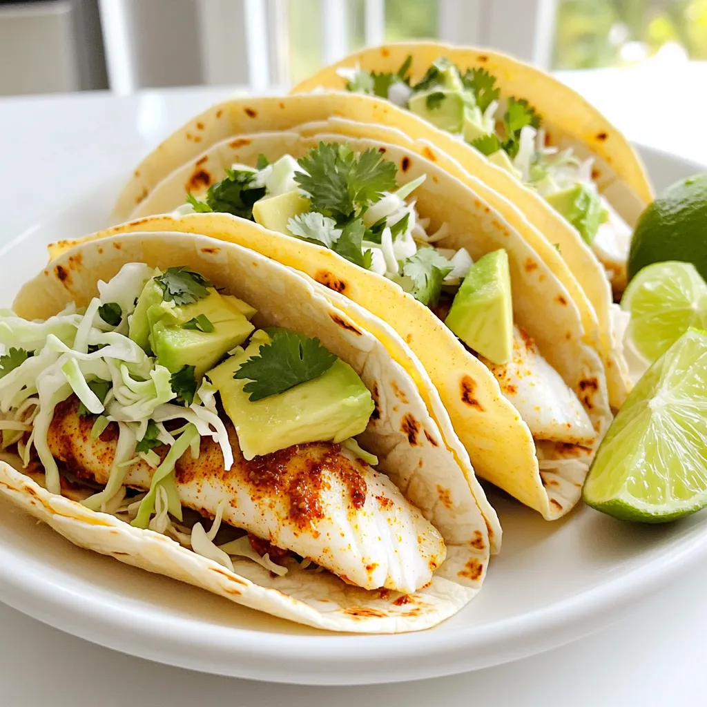 The fish is the star of the dish. I love using tilapia or cod because they are mild and flaky. Olive oil helps the spices stick and adds flavor. Chili powder brings heat and depth. Cumin gives a warm, earthy taste. Garlic powder enhances the overall flavor profile. The lime zest and juice add brightness and tang, making each bite refreshing. Corn tortillas provide a soft base for the tacos. Cabbage adds crunch, while avocado brings creaminess. Fresh cilantro adds a burst of herbal notes that make the dish pop.