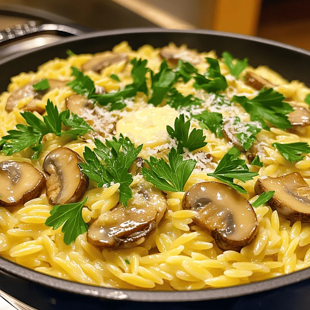 In this recipe, you will find simple yet rich ingredients. Orzo pasta is the star here. It cooks quickly and has a nice bite. Butter adds a creamy texture and a lovely flavor. Garlic gives a punch that makes your taste buds dance. The cremini mushrooms bring earthiness and depth to the dish.