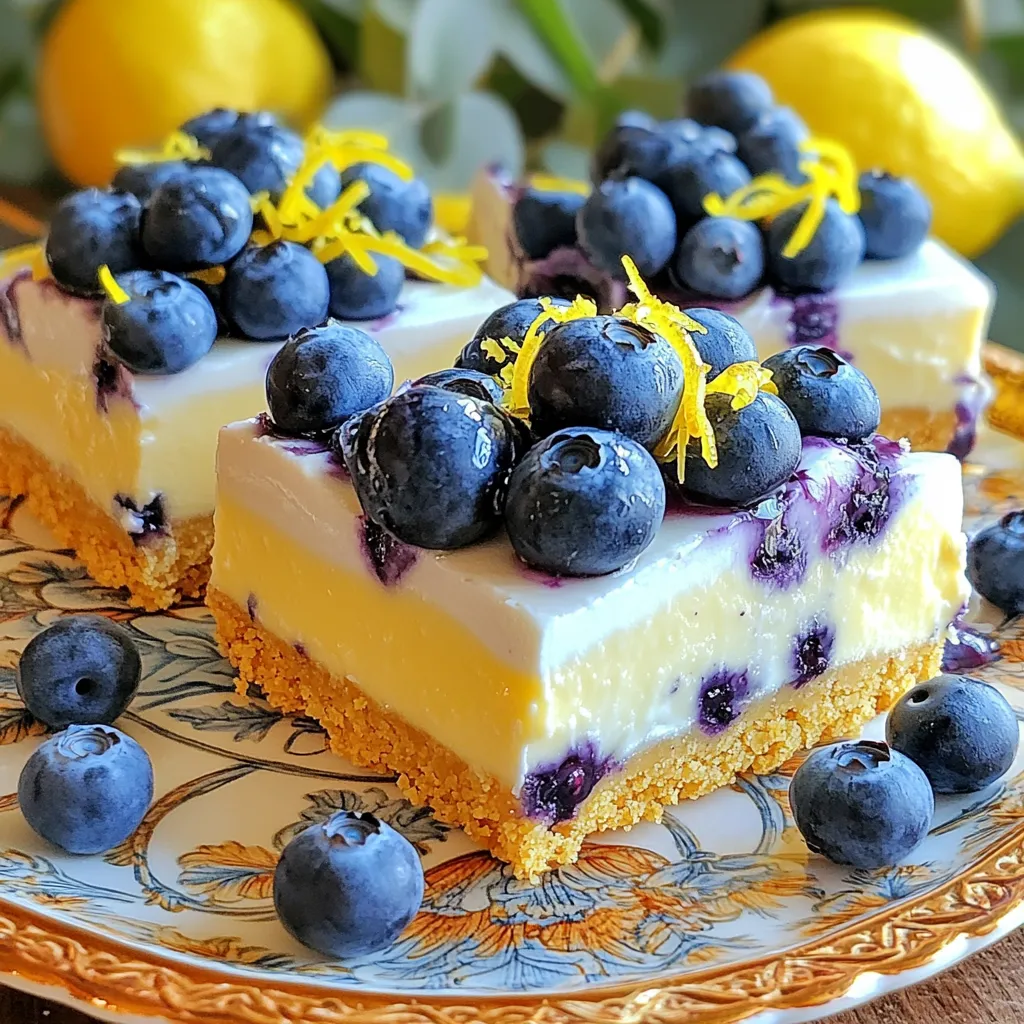 Before serving, check the bars after storage. If they seem a little soft, you can chill them for a bit. Drizzle some honey on top for added sweetness. Garnish with extra blueberries and lemon zest to make them look pretty. Serve them on a nice plate to impress your guests!