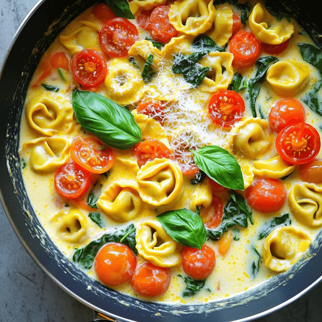 For seasoning, use salt and pepper to suit your taste. Fresh basil leaves will elevate your dish with a pop of color and fresh flavor. Together, these ingredients make a delightful and creamy Tuscan tortellini that is easy to prepare.