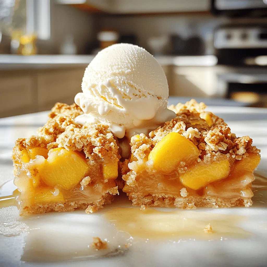 For the best peach crumble bars, you need fresh peaches. Use about 2 cups of diced peaches. This is around 3 to 4 medium peaches. The peaches should be ripe but firm. They add sweetness and flavor to the bars. You also need 1 tablespoon of lemon juice. This juice brightens the peach taste.