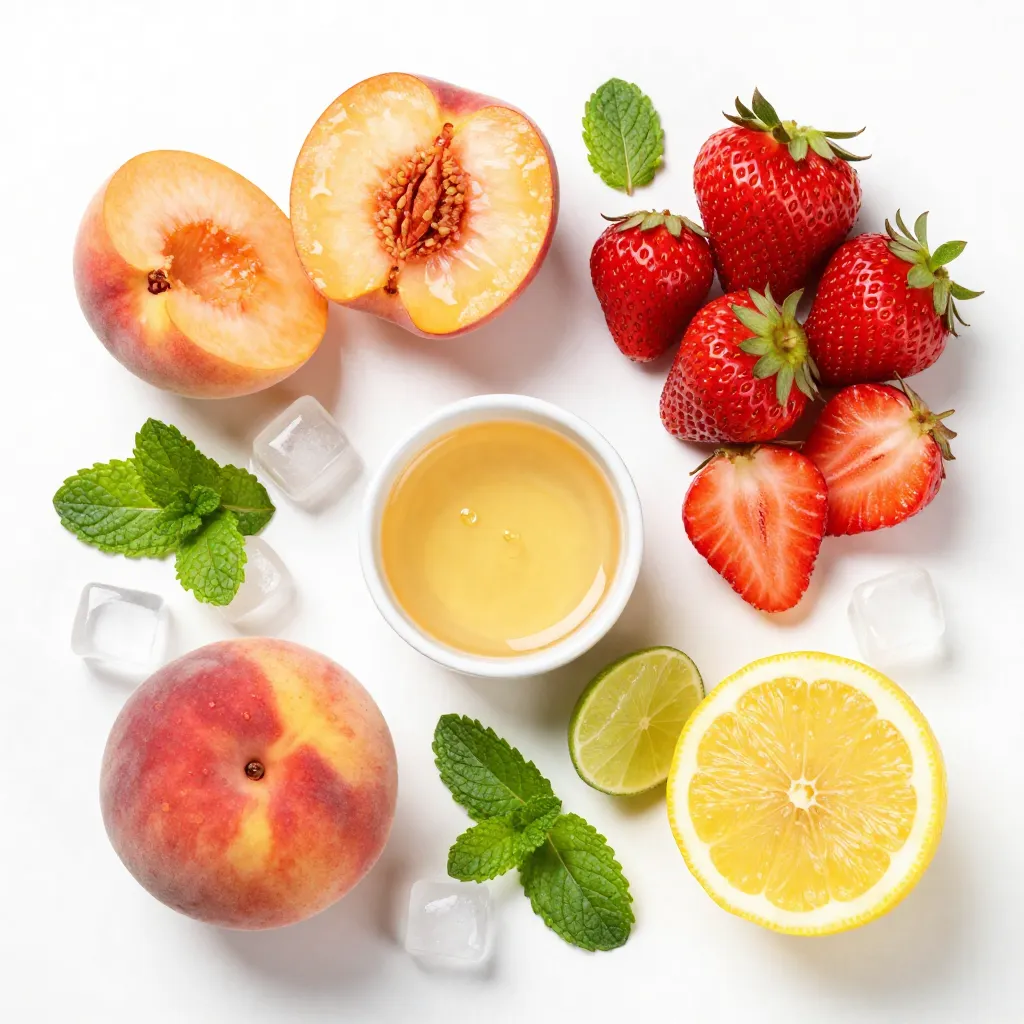 First, gather your peaches and strawberries. You need two ripe peaches. Dice them into small pieces. Next, take one cup of fresh strawberries. Hull them and slice them thinly. Place both fruits into a large pitcher. This mix will give your mocktail a sweet base.
