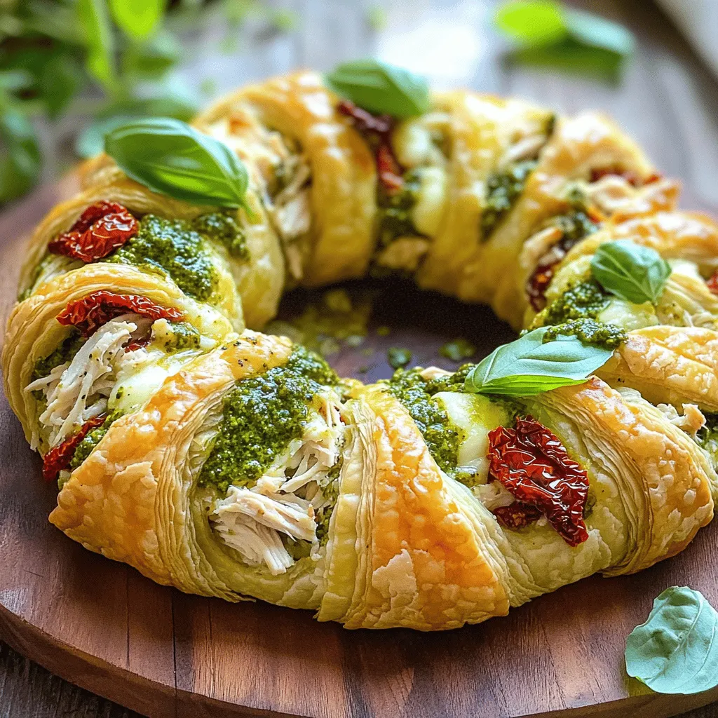 To make your Pesto Chicken Crescent Ring shine, start with fully cooked chicken. Shred it finely for even mixing. Use a good amount of salt and pepper to season the chicken. This step adds depth to each bite.