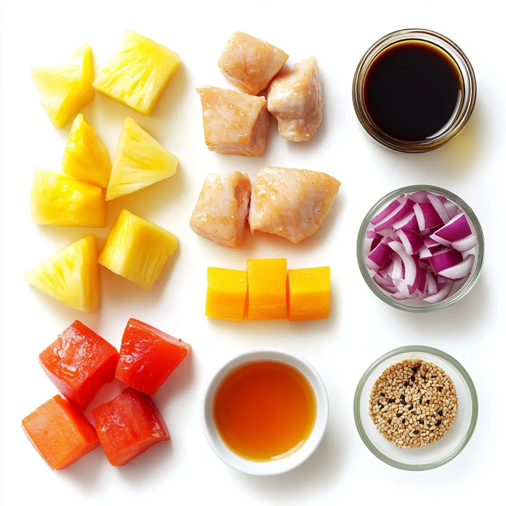 The main ingredients for these skewers are simple yet flavorful. Chicken breast is lean and juicy, making it perfect for grilling. Fresh pineapple adds sweetness and tanginess, which pairs well with the savory chicken. Bell pepper, whether red or yellow, brings in a pop of color and crunch. Red onion provides a lovely bite that complements the other ingredients.