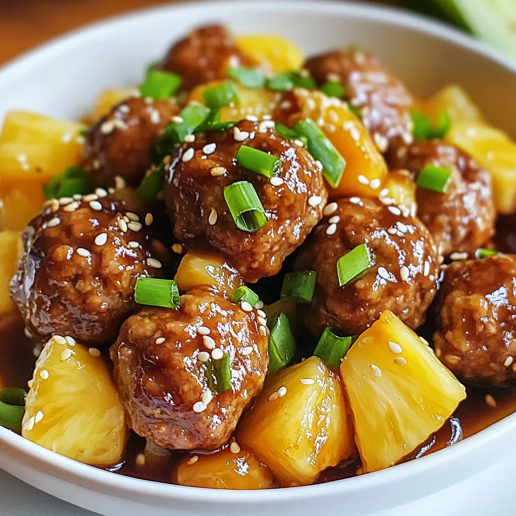 For a fun serving idea, use steamed rice or quinoa as a base. Place the meatballs on top and drizzle with sauce. Sprinkle sesame seeds and extra green onions for color. For a cute twist, serve in takeout boxes. This adds a fun touch to your meal. Make it special by adding some fresh pineapple chunks on the side. Enjoy the bright colors and flavors!