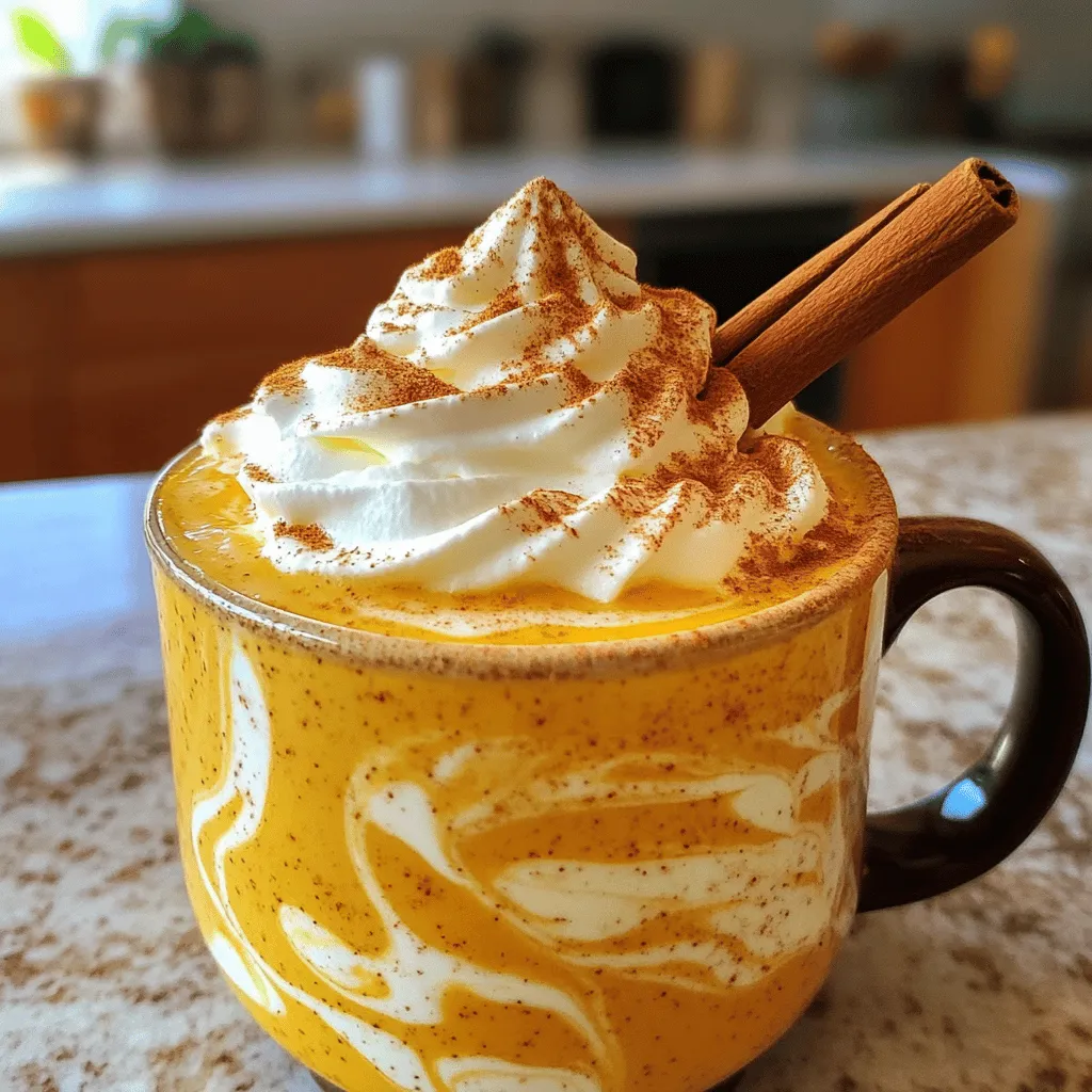 Next, it’s time for the fun part! Top your latte with a generous amount of whipped cream. Then, sprinkle extra pumpkin pie spice on top. If you like, add a cinnamon stick for garnish. This not only looks great but adds flavor too. Serve your Pumpkin Spice Eggnog Latte hot. Enjoy the cozy flavors with a friend or by yourself.