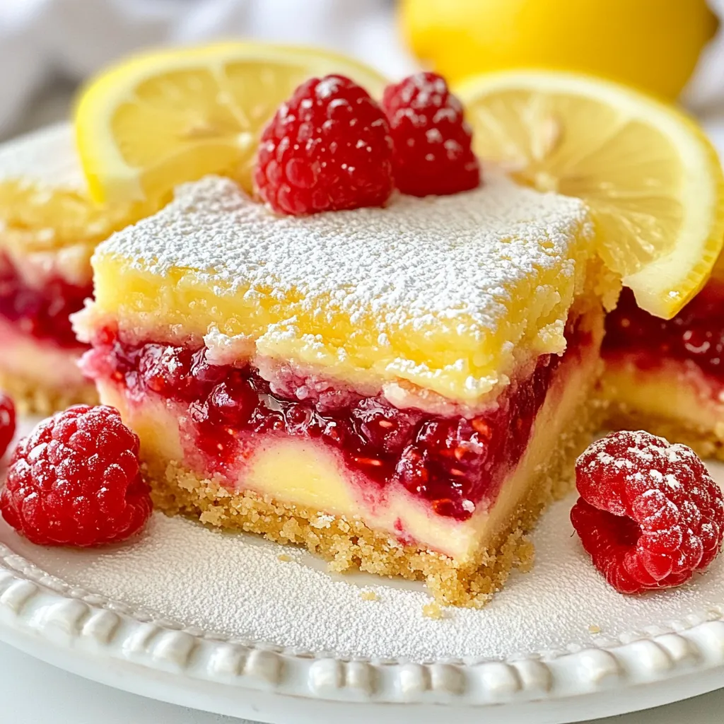 Deliciously tangy and sweet bars made with fresh raspberries and lemon juice, perfect for summer.