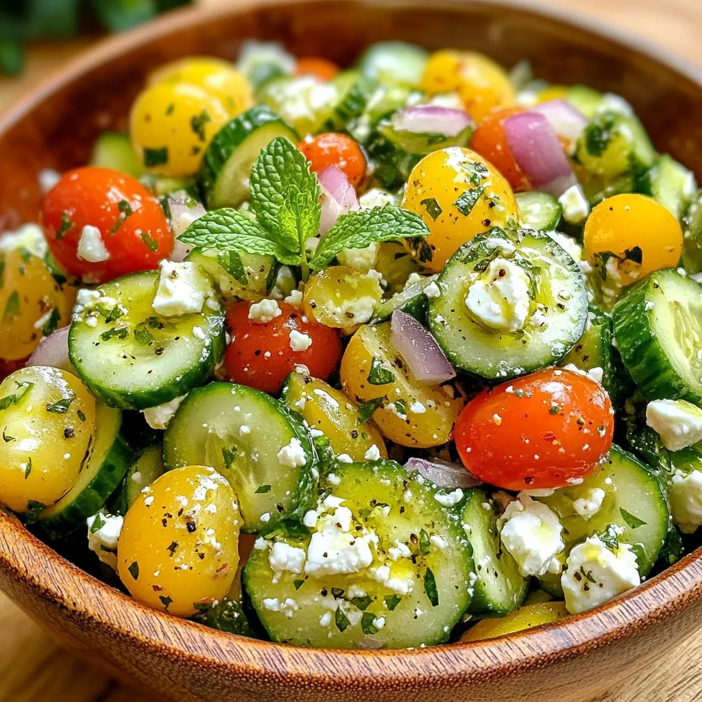 You can easily change up ingredients in this salad. Instead of feta cheese, try using goat cheese. It adds a tangy flavor that pairs well with cucumbers. Mozzarella is another good choice. It offers a creamy texture that balances the salad nicely.