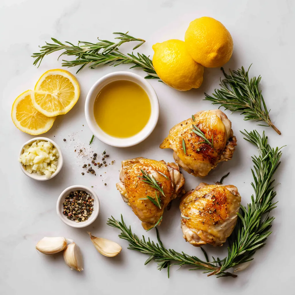 To make Rosemary Lemon Chicken Thighs, you need a few key ingredients. The chicken thighs give you rich flavor and crisp skin. Olive oil helps to keep the chicken moist while adding great taste. You can use fresh or dried rosemary, but I love fresh for its strong aroma.