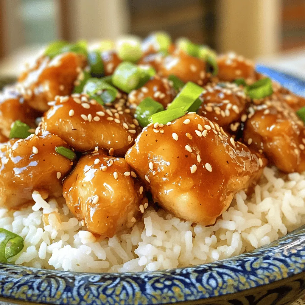 Serve your Honey Garlic Sesame Chicken over a bed of rice. Jasmine or white rice works best. It balances the sweet and savory flavors. Add steamed broccoli or snap peas for color and crunch. Garnish with green onions and sesame seeds for a pretty finish. This makes your meal look vibrant and appetizing. Enjoy it with a side of spring rolls for a complete feast.