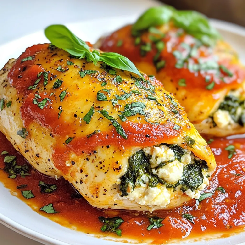 To store your leftovers, let the chicken cool first. Place the stuffed chicken breasts in an airtight container. You can keep them in the fridge for up to three days. Make sure to separate the marinara sauce if you have any left. This keeps the chicken from getting soggy.