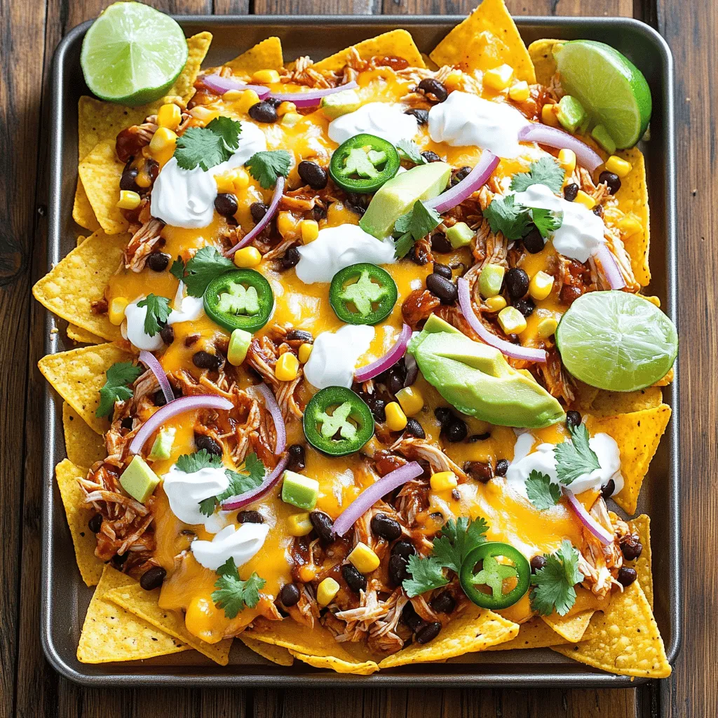 Layering is key for great nachos. Start with a base of tortilla chips. Spread them evenly for the best crunch. Then, add your BBQ chicken. Make sure every chip gets some chicken. Next, sprinkle black beans and corn to add texture and flavor.