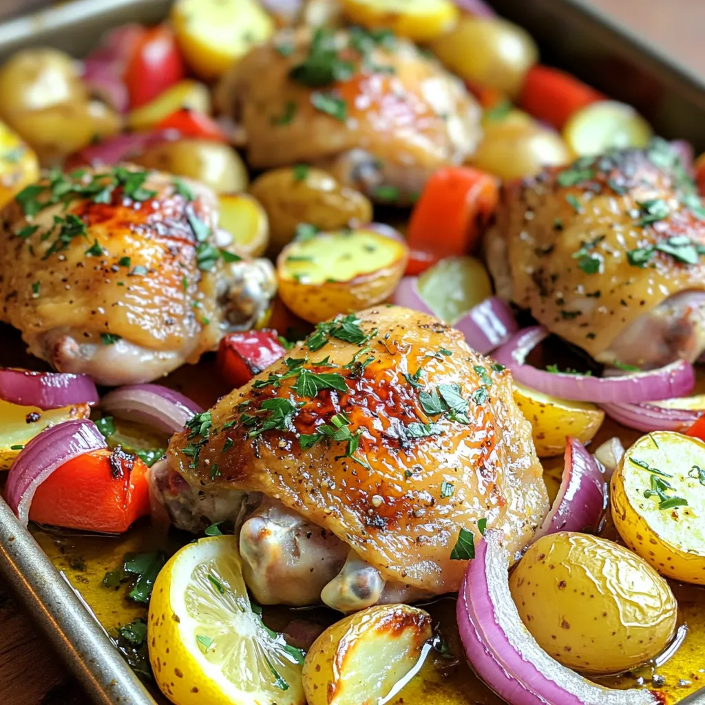 I love using chicken thighs for this dish. They stay juicy and tender, making every bite a delight. Baby potatoes add a hearty feel, and they soak up all the flavors. The red onion and red bell pepper bring a bit of sweetness and color, making the dish more appealing.