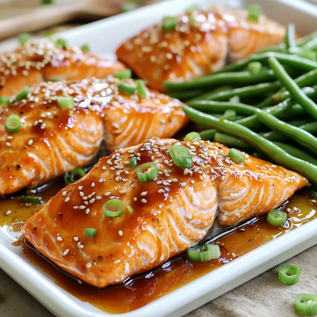 – In a small bowl, whisk together the honey, Sriracha, soy sauce, minced garlic, grated ginger, olive oil, salt, and pepper. This mix gives the salmon and green beans a tasty kick.