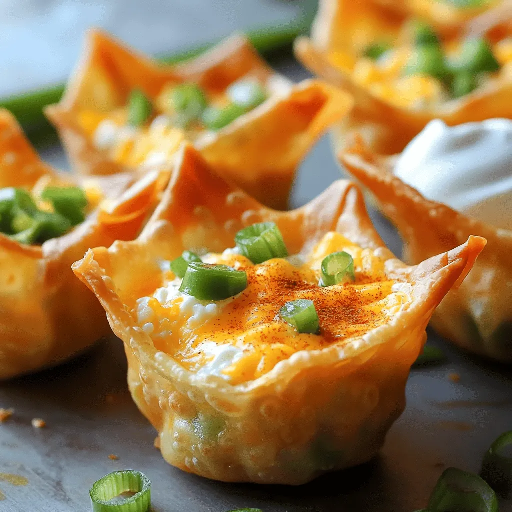 To get that ideal crunch, remember to preheat your oven to 375°F (190°C). Lightly spray your muffin tin with cooking spray or brush it with olive oil. This step helps the wonton wrappers crisp up nicely. When you press the wonton wrappers into the muffin cups, ensure they cover the sides well. This forms a sturdy base for your filling. Bake them for 12-15 minutes or until golden brown. Keep an eye on them, as ovens can vary. Once they cool for a bit, they will be even crispier!
