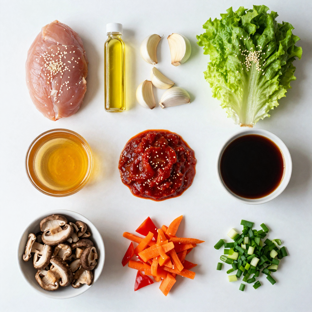 To make these spicy Korean chicken lettuce wraps, gather these key ingredients: