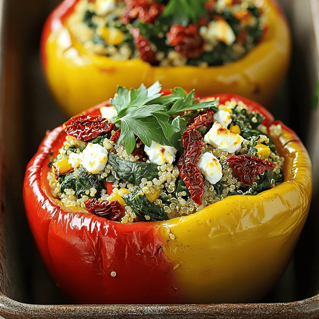 You can easily change up the flavors in Spinach Feta Stuffed Peppers. If you want a creamier taste, swap feta cheese with goat cheese or mozzarella. Each option brings a unique twist. You can also switch quinoa for brown rice or couscous. Brown rice adds a nutty flavor, while couscous cooks faster and gives a fluffy texture.