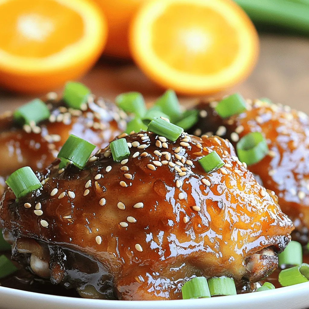 Gathering the right ingredients is key to making Sticky Orange Ginger Chicken. I love using bone-in, skin-on chicken thighs. They stay juicy and have great flavor. Fresh orange juice and zest give this dish its bright taste. Minced ginger adds warmth and spice. Honey brings sweetness, while soy sauce gives depth.