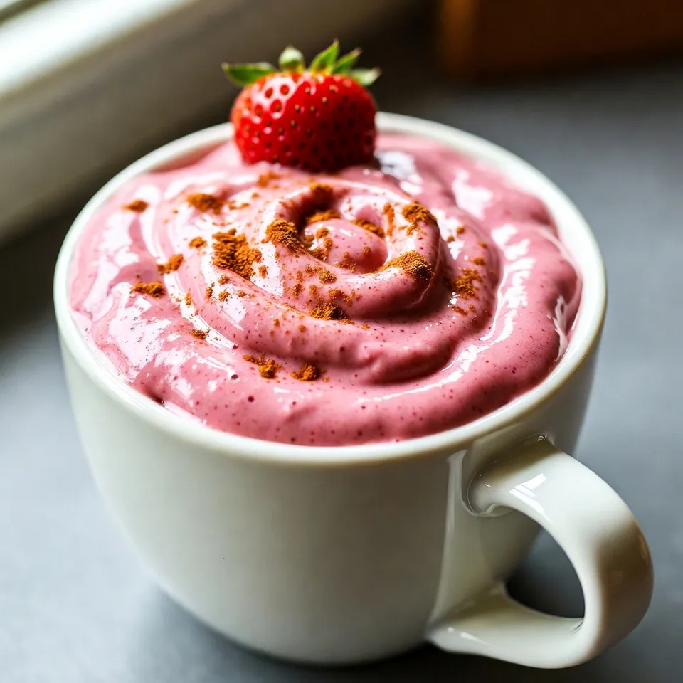 A delicious and creamy smoothie that combines the flavors of strawberry and cheesecake.