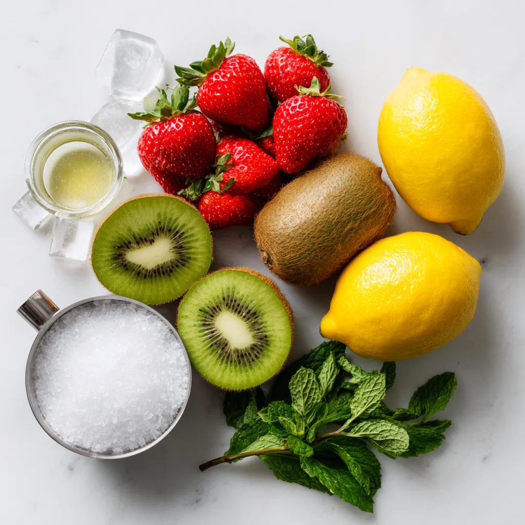 Each ingredient plays a vital role in this drink. Fresh strawberries give a sweet flavor and bright color. Ripe kiwis add a tangy twist. Fresh lemon juice brings balance with its tartness.