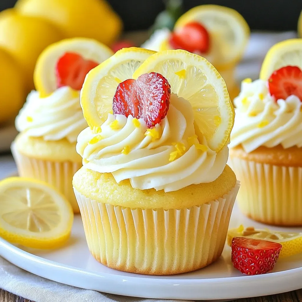 For a decorative touch, garnish each cupcake with a fresh strawberry and a small lemon slice.