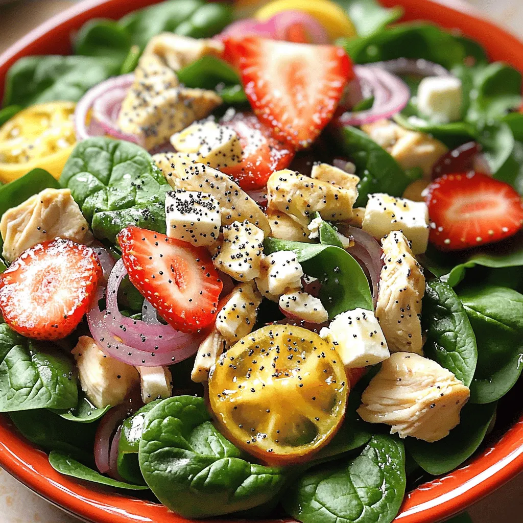 Craving something fresh and tasty? You’ll love my Strawberry Spinach Poppy Seed Salad with Chicken! This dish pairs sweet strawberries with tender spinach and protein-rich chicken for a perfect meal. Simple to make and packed with vibrant flavors, it’s great for lunch or dinner. Let me guide you through easy steps and useful tips to create this delightful salad. Dive in and discover a dish that will impress your taste buds!