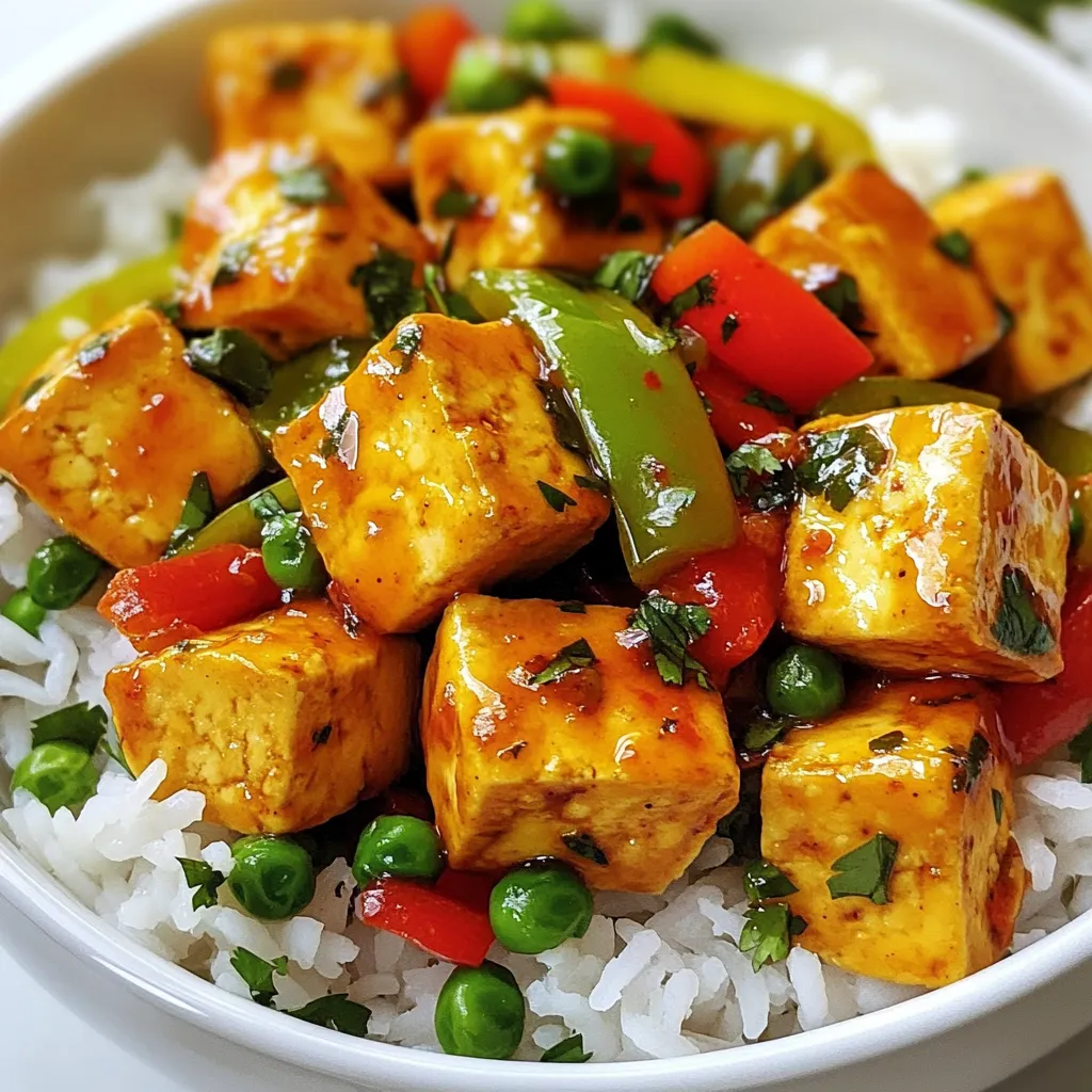 A delicious and vibrant stir fry featuring crispy tofu, fresh vegetables, and a sweet chili garlic sauce.