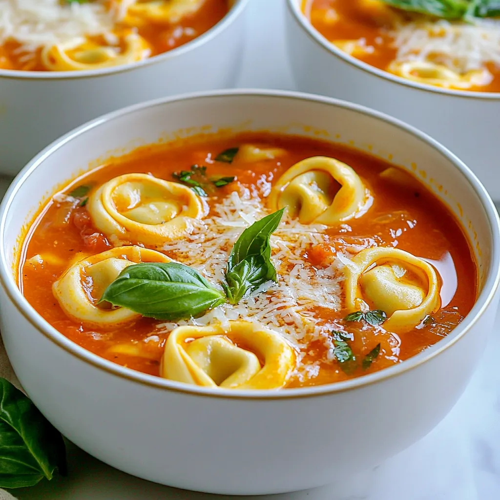A comforting soup featuring cheese tortellini, fresh basil, and a flavorful tomato broth.