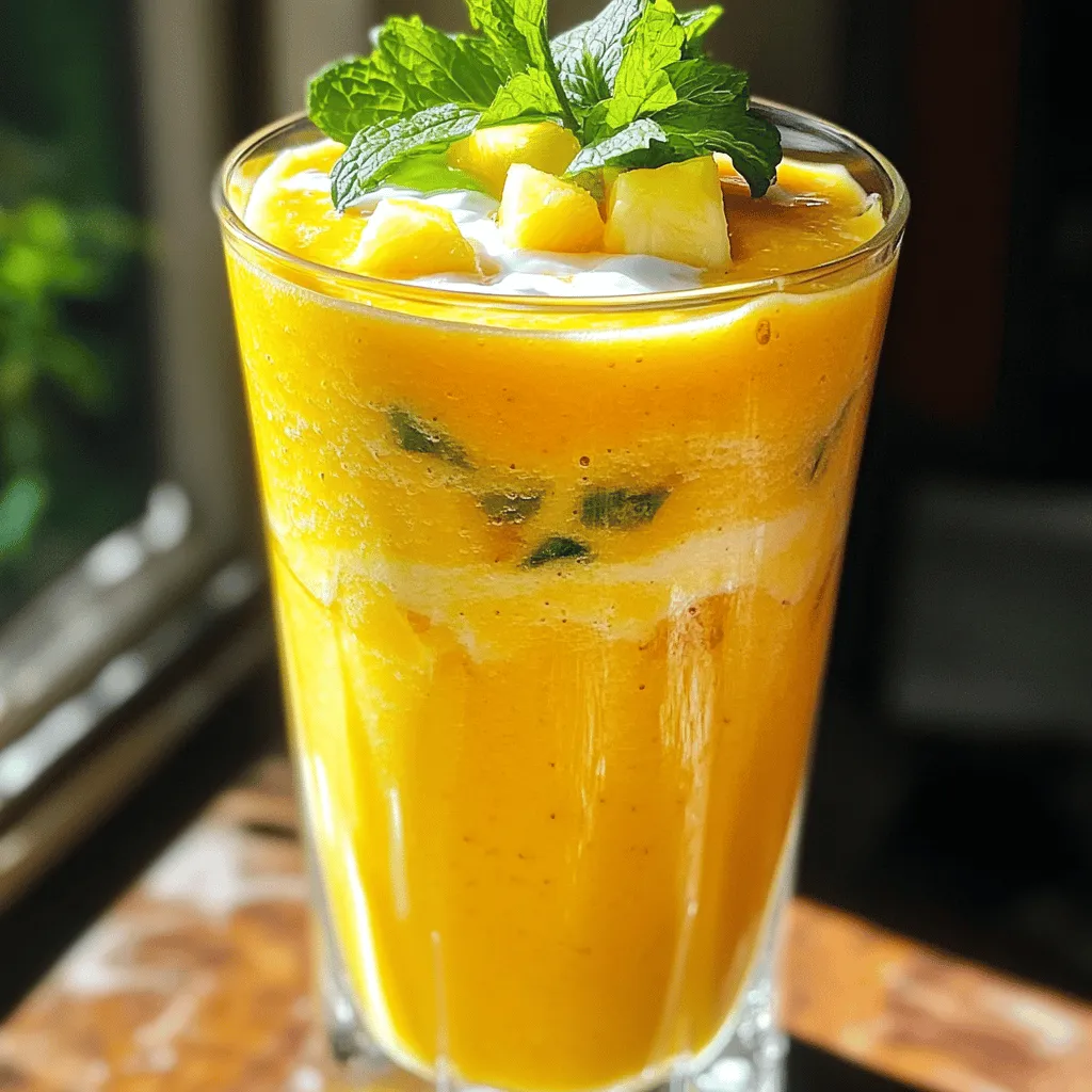 To get the perfect creamy texture in your Tropical Pineapple Smoothie, use ripe banana and coconut milk. These two ingredients blend well together. They create a rich and smooth base. If you want it extra creamy, add more Greek yogurt. This makes your smoothie thick and satisfying.