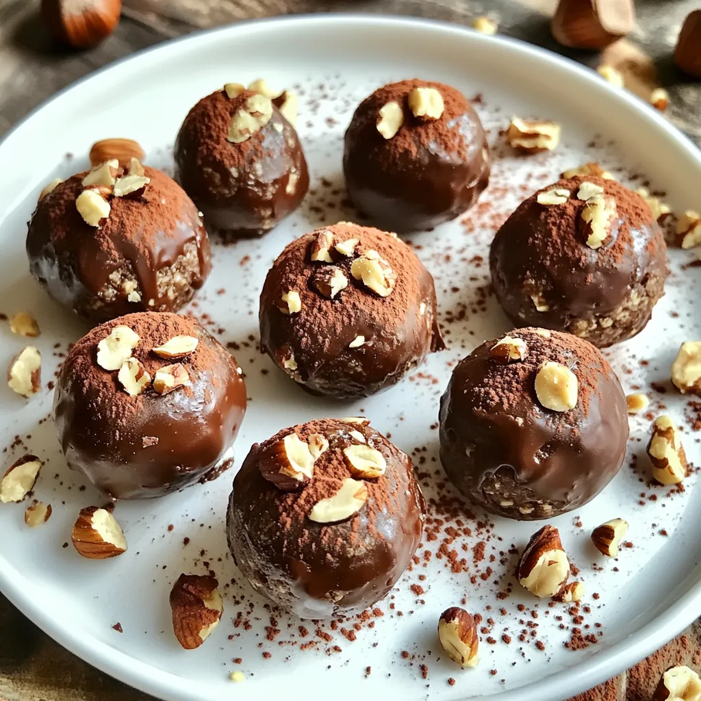 Presentation matters! Arrange the energy bites on a pretty plate. Sprinkle cocoa powder or crushed hazelnuts around them. This adds a nice touch. You can also drizzle melted dark chocolate on top. It gives a fancy look and extra flavor. Serve these bites at parties or as snacks. They are sure to impress your guests!
